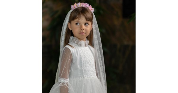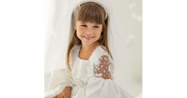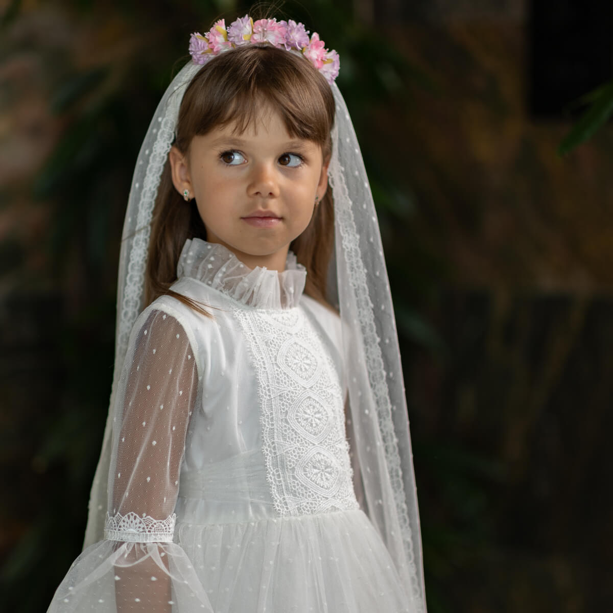 • Made in Europe: All of our First Holy Communion veils and dresses are designed and handcrafted in Europe (Ukraine) and we have stock of dresses in Miami.