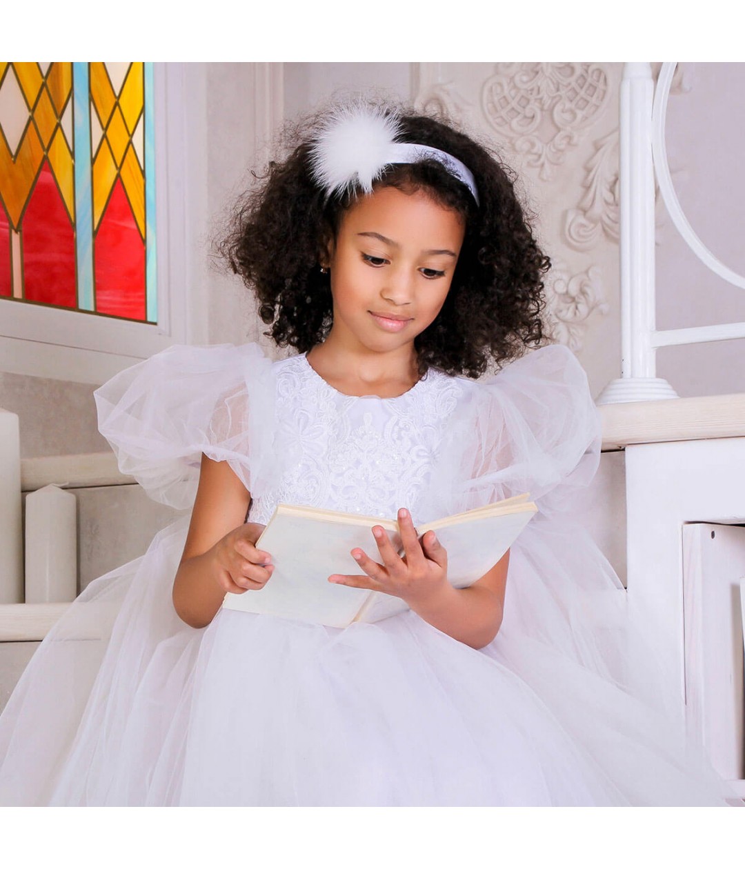 Perfectly designed for ages 3-16, this exquisite accessory features a sturdy plastic headband wrapped in luxurious white satin, ensuring comfort and style. The standout feature? A beautifully handcrafted large fur pom-pom that adds a whimsical flair to any look.