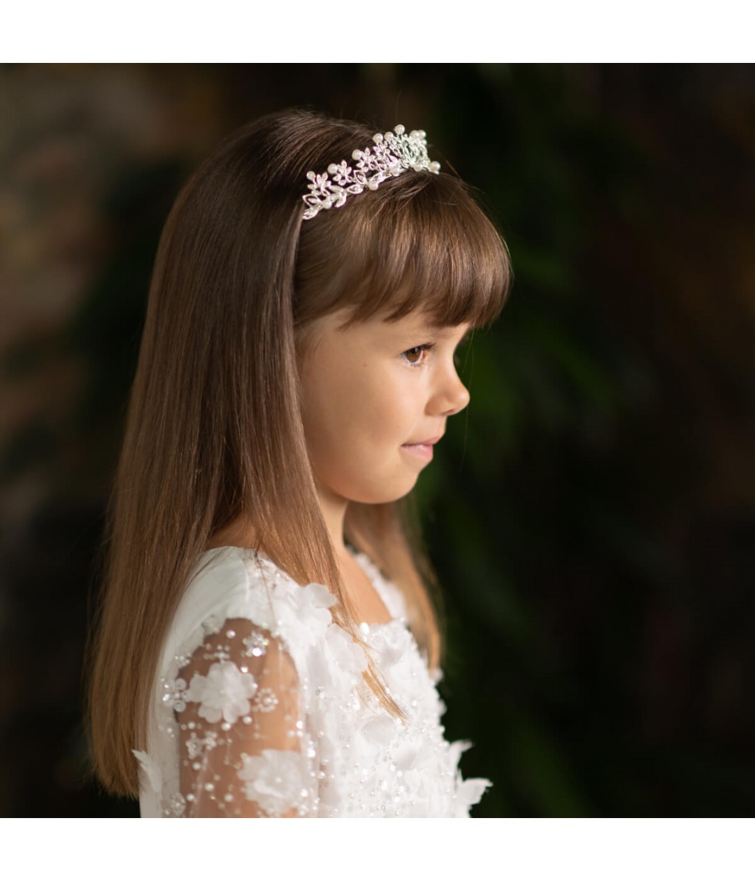 Please note: the design may vary slightly from the picture, ensuring each piece has its own unique charm and character. The refined style and elegant sparkle make this tiara a versatile choice for everything from First Communion ceremonies to weddings and portraits.