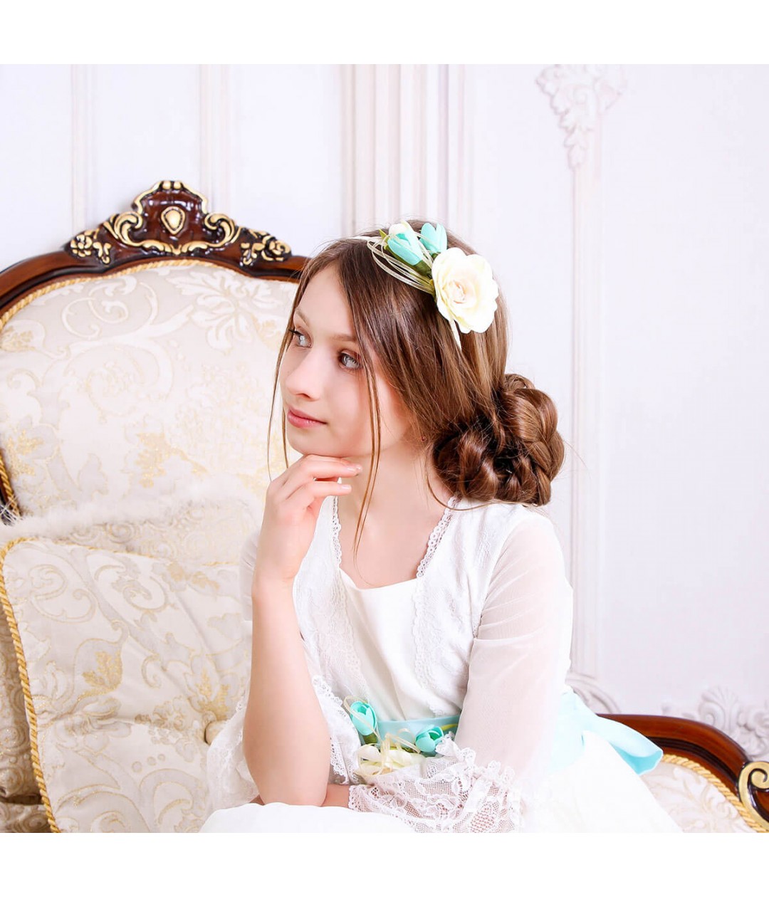 carefully crafted to pair beautifully with our custom dresses. Adorned with delicate handcrafted flowers, this hairband adds the perfect touch of elegance and charm to any outfit.