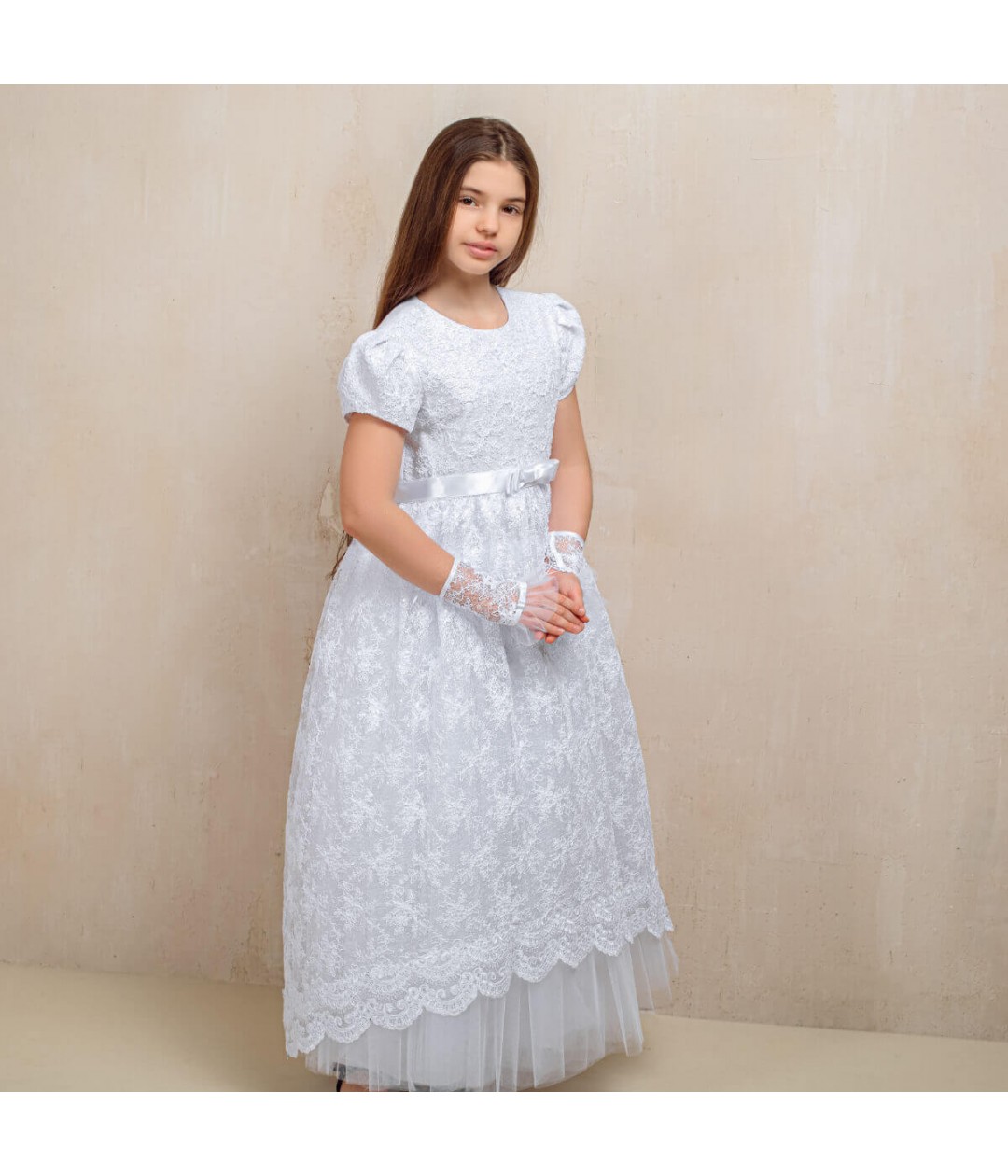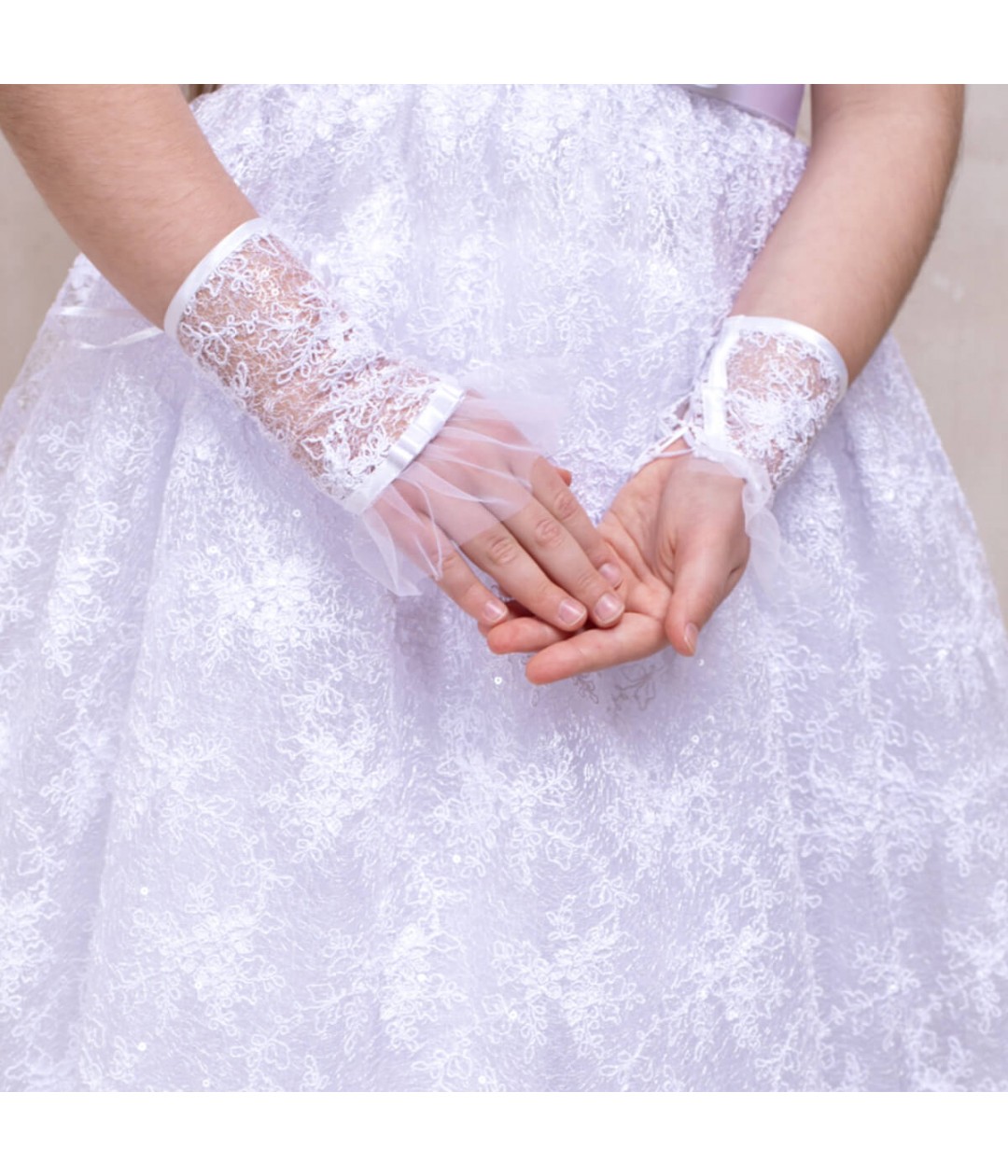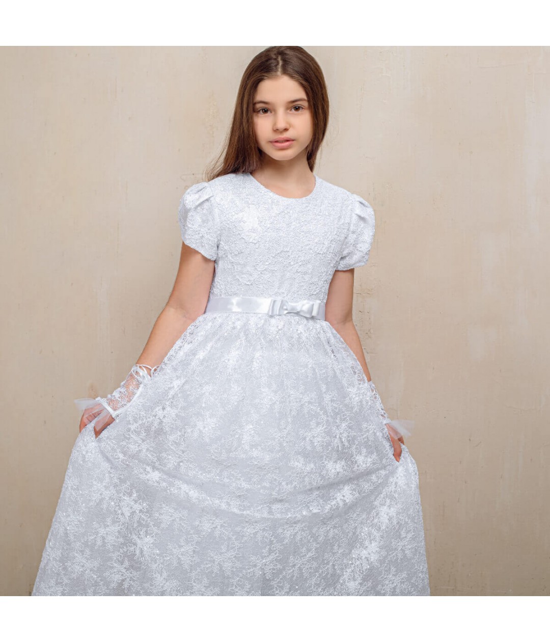 Available exclusively in a classic ivory shade, the dress offers a refined and timeless aesthetic perfect for sacred occasions. This listing includes the dress only, but it pairs effortlessly with any of our Communion veils or gloves to complete the ceremonial look.