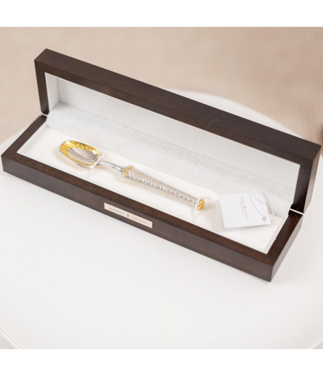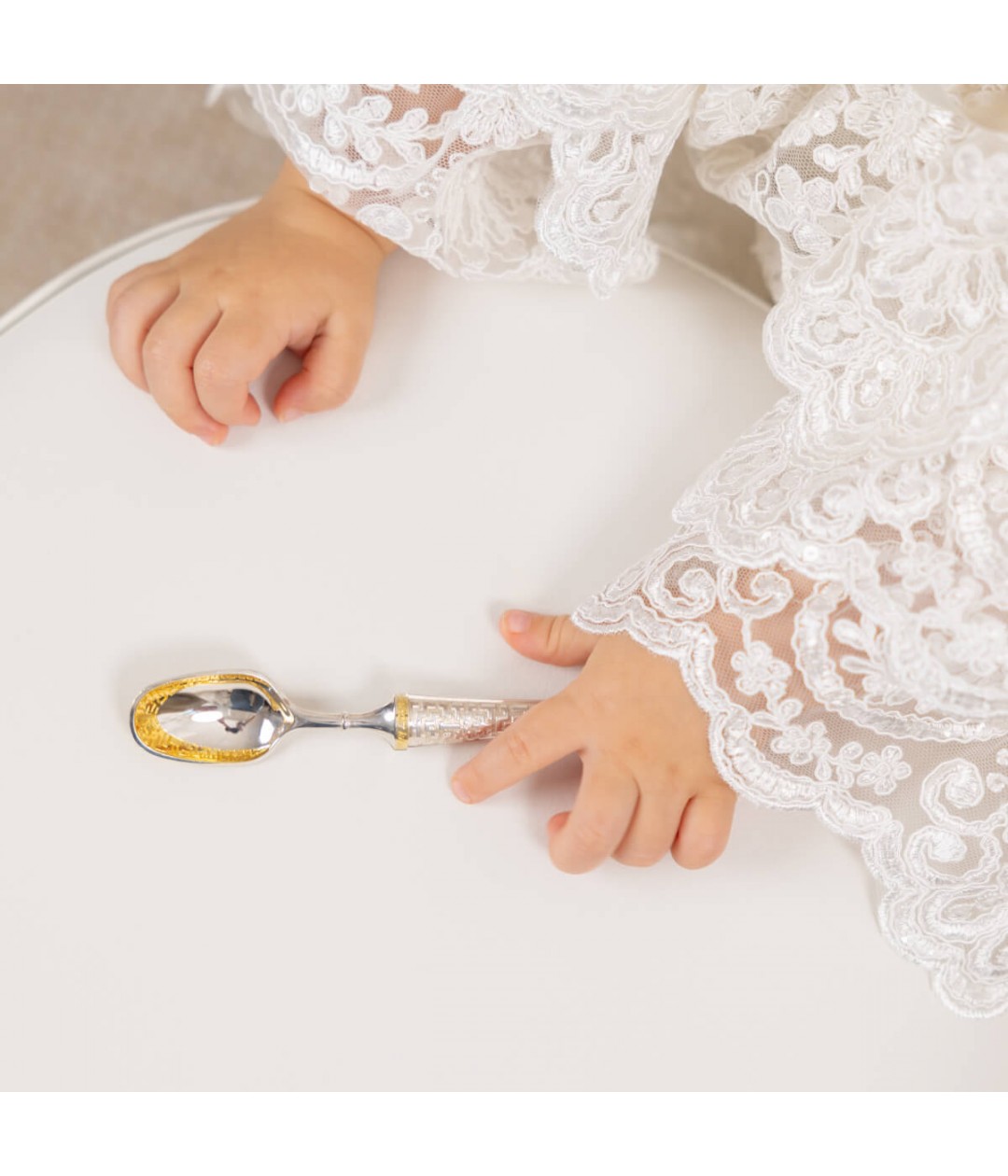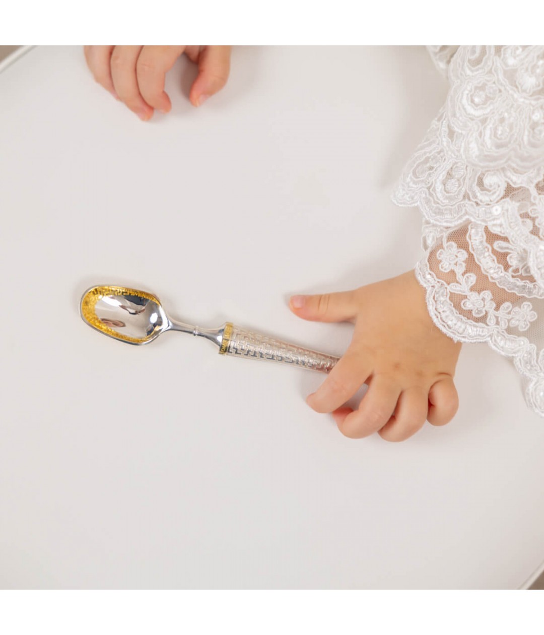 Silver has long been regarded as a protective talisman against evil forces. It is customary to give silver to newborns, especially when they get their first tooth. Tradition holds that gently scratching the tooth with a silver spoon ensures painless, healthy, and strong growth of the next teeth.To order this special spoon or inquire about more information, please reach out to our dedicated manager.