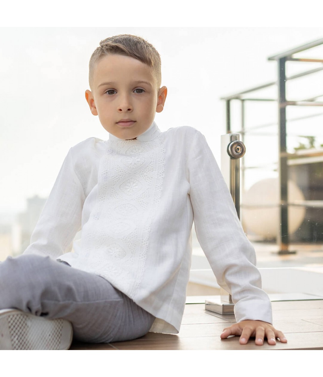 Dress your young gentleman in timeless style with our Boys Linen Shirt — perfect for Confirmation, weddings, birthdays, and other special occasions. Made from premium-quality linen in a soft ivory shade, this shirt blends classic elegance with modern charm.
