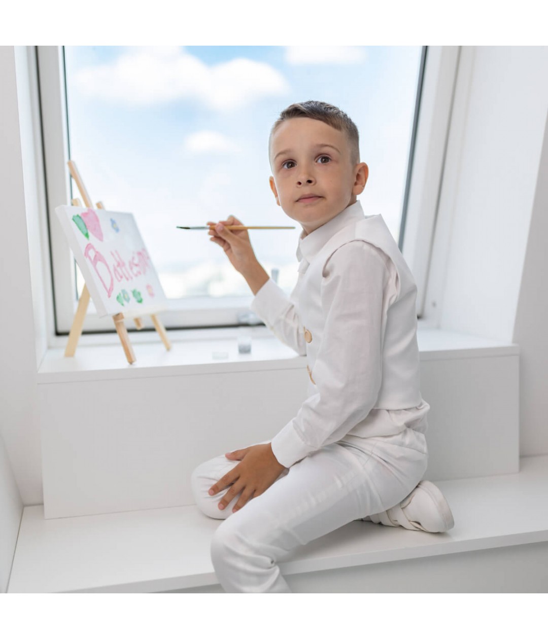 – a classic, elegant ensemble crafted to celebrate life’s most cherished moments. Whether he’s attending his First Communion, a wedding, a birthday celebration, or a bar mitzvah, this 4-piece set ensures he looks polished and feels comfortable.