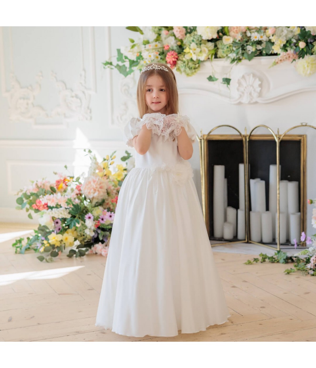 The ELIZABETH First Communion Dress is a luxurious and timeless choice for your child’s special day.