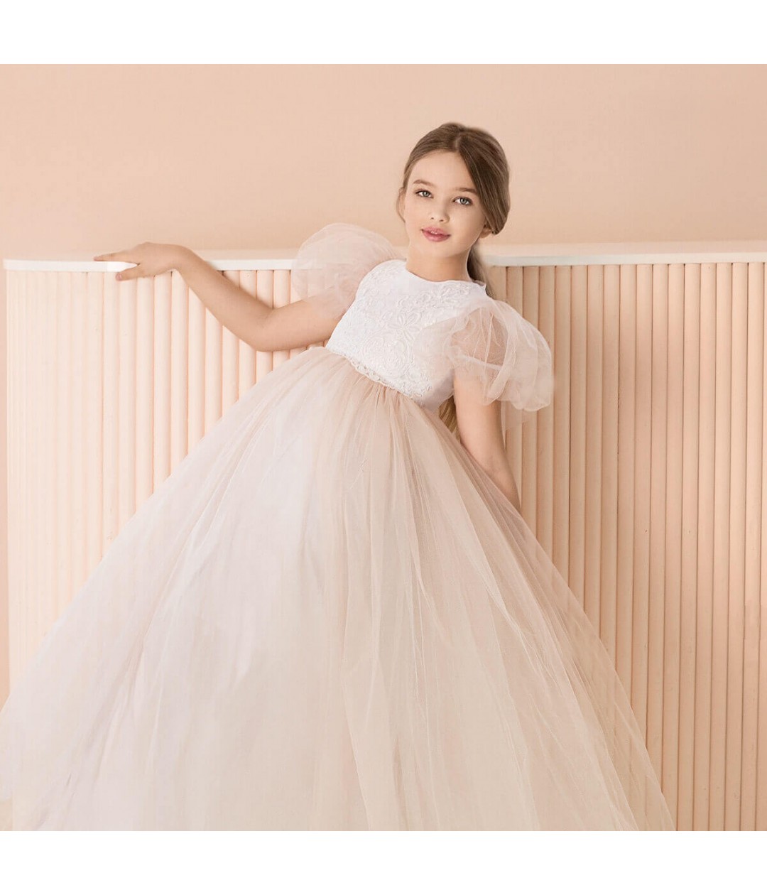 This charming number features a delicate lace bodice and a fluffy tulle skirt that's perfect for any special occasion. Crafted with 100% cotton and a batiste lining, it's soft, breathable, and oh-so-comfortable for all-day wear. And the best part? The tulle skirt comes in a lovely purple hue, but you can totally customize it to match your mini-me's style. Whether you're heading to a party, a photo shoot, or just want to add a touch of whimsy to her wardrobe, the KENNEDY Dress is the way to go.