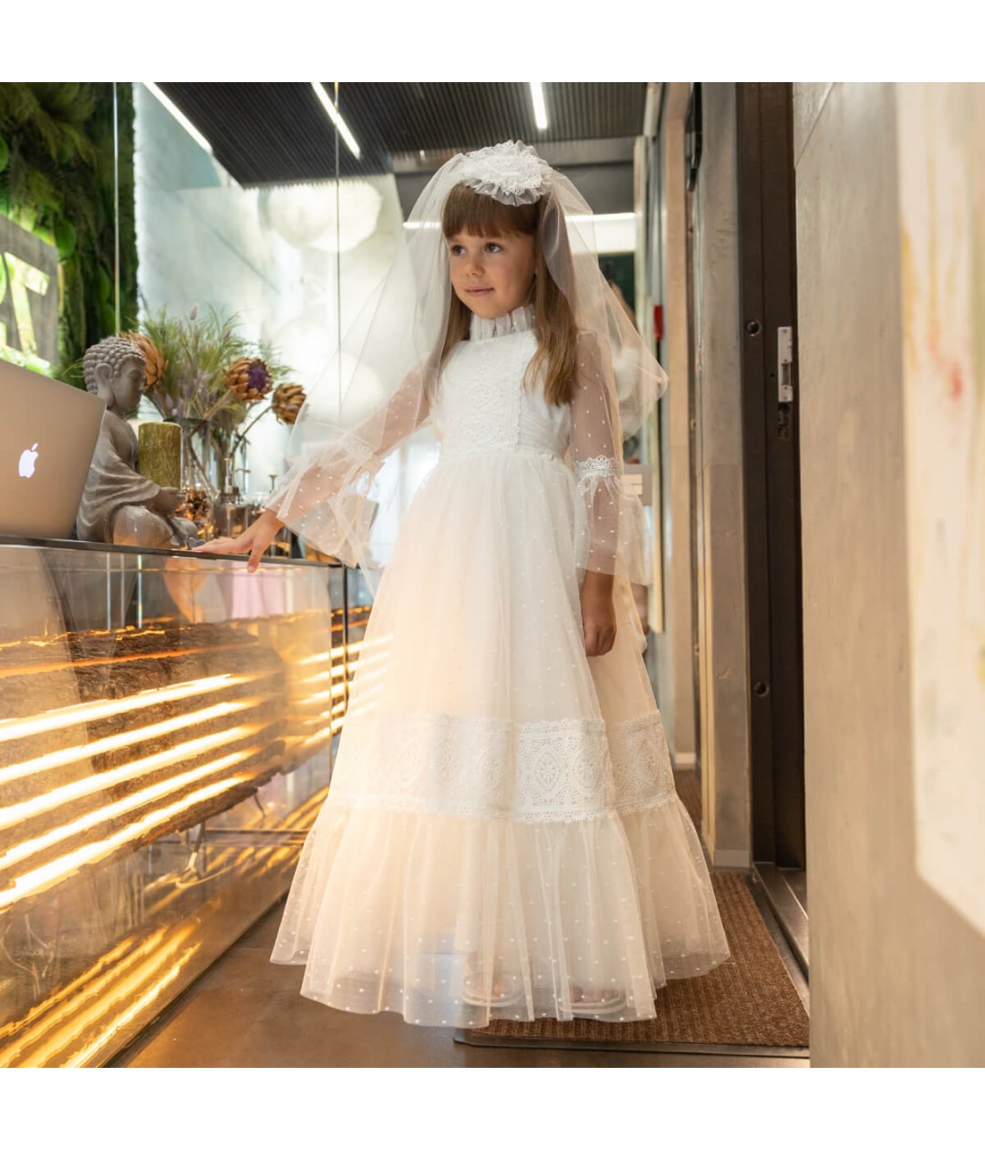 Fully underlined with batiste for added comfort, it ensures your little one feels like a princess on her communion day.