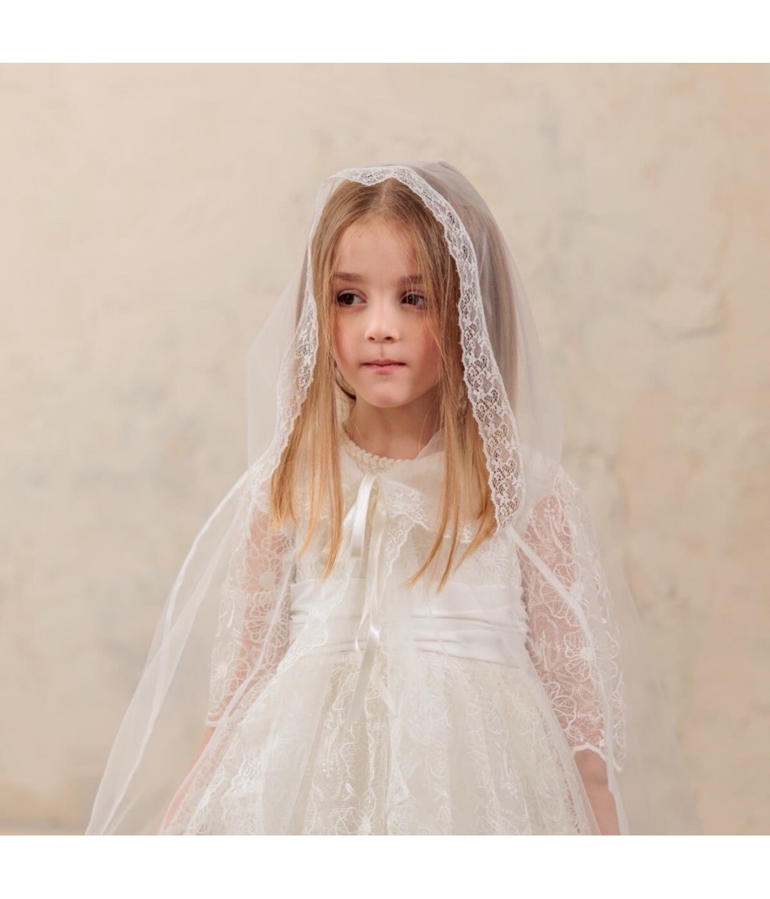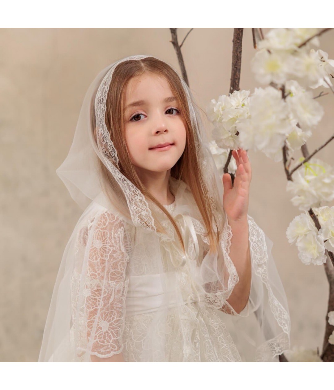 The LONDON Communion Caped Mantilla brings a touch of traditional elegance to your child’s First Communion ceremony. Crafted from soft tulle and adorned with intricate Italian lace, this mantilla embodies timeless beauty and grace.