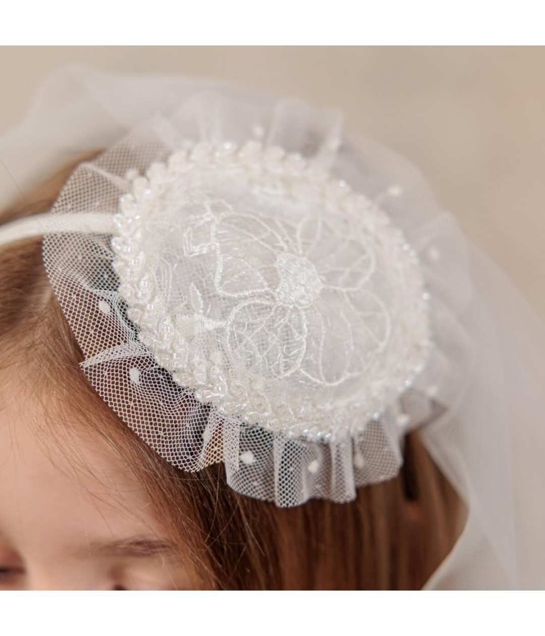 Comfortable to wear and beautifully crafted, this headband is a lovely alternative to traditional veils and pairs perfectly with our Communion dresses in ivory color.