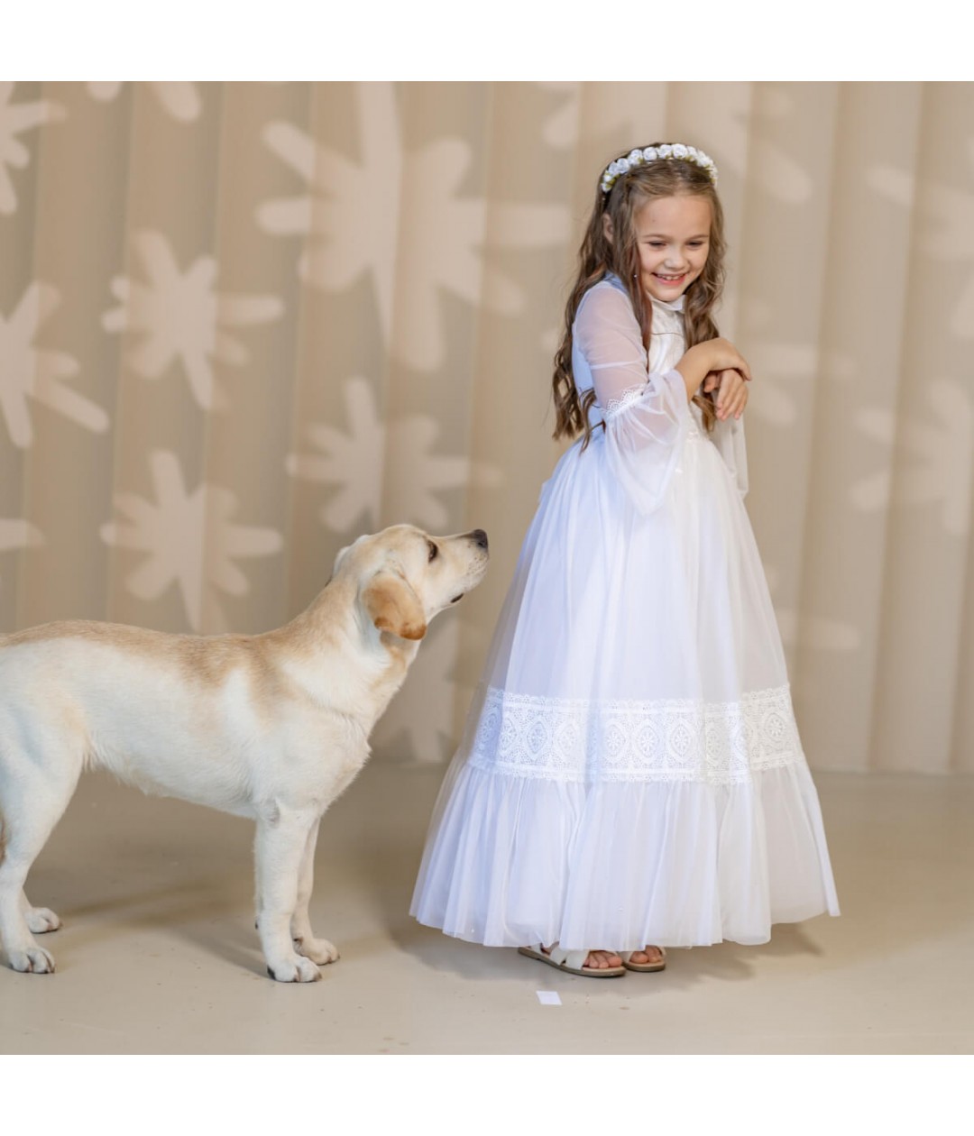 This dress includes the gown only and can be effortlessly paired with one of our traditional veils or mantillas for a complete communion look.