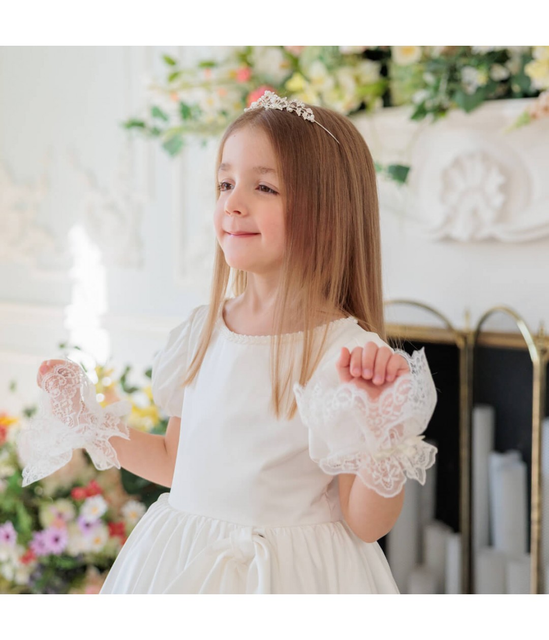 Whether styled with a traditional veil, a floral crown, or kept clean and minimal, the MARIA Communion Dress creates an unforgettable look. The back is finished with a hidden zipper for a smooth fit.
