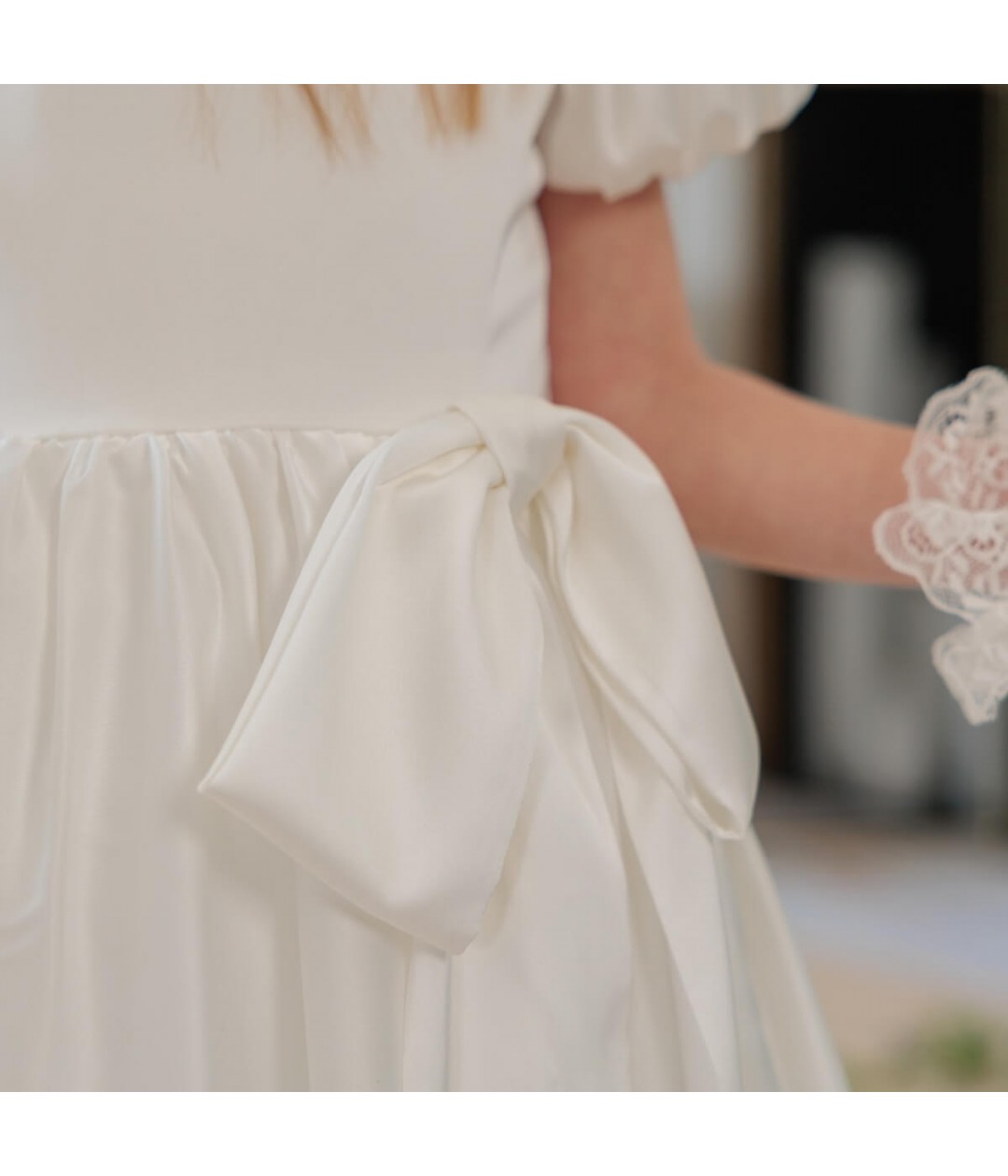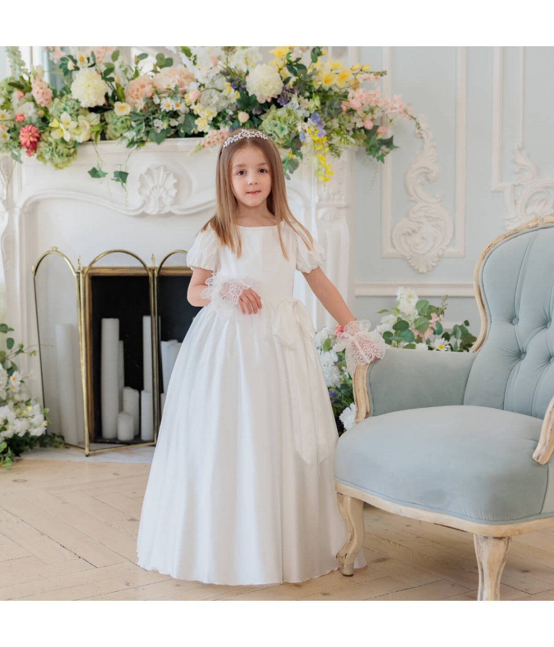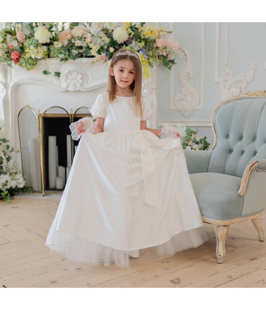 Thoughtfully designed with both beauty and comfort in mind, this dress is perfect for girls who appreciate classic sophistication on their special day.