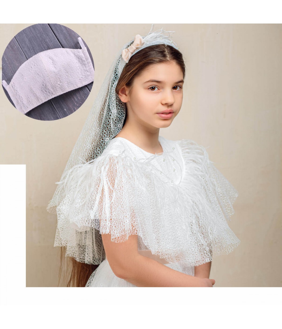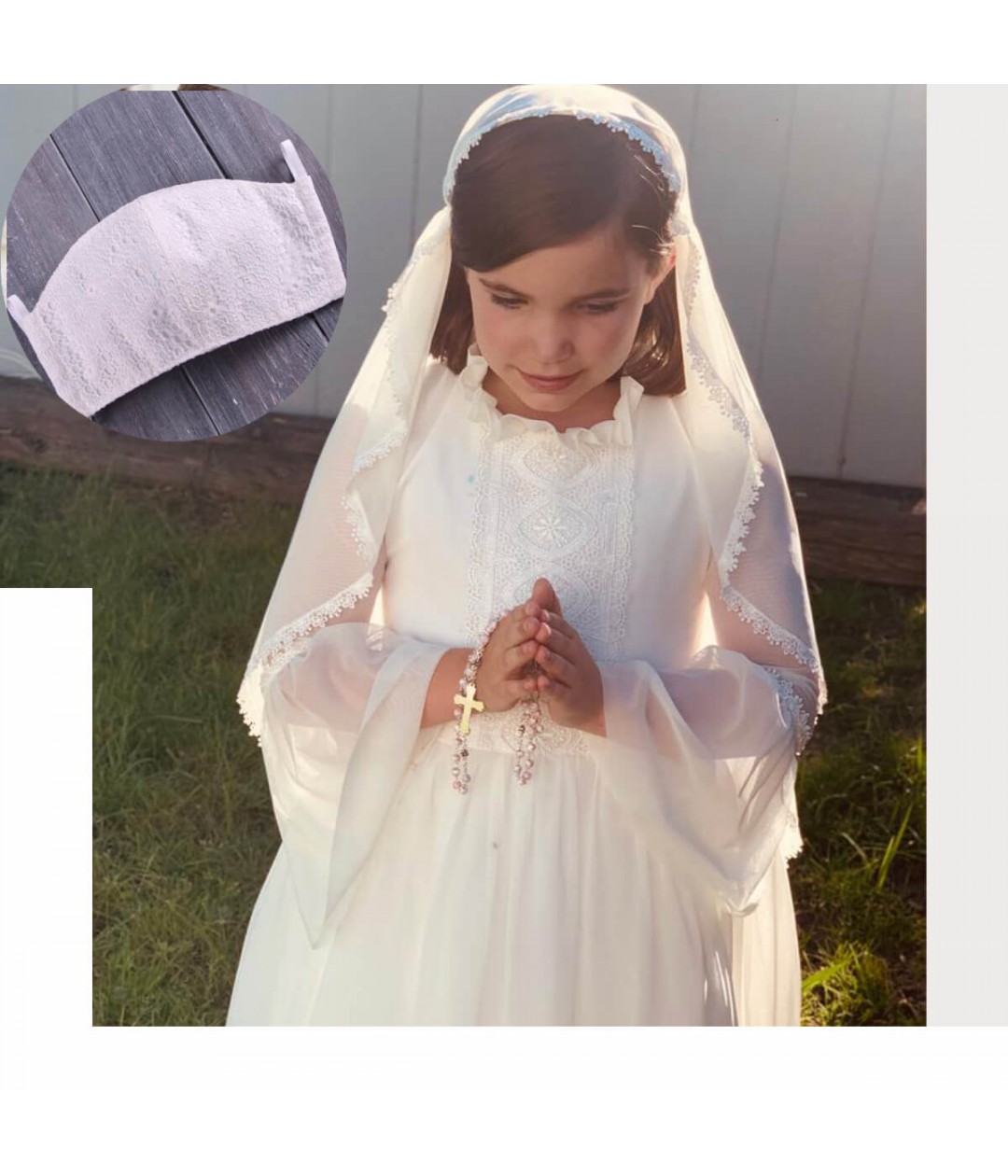 The First Communion Face Mask provides a gentle, comfortable fit for sensitive skin and pairs beautifully with any Communion outfit. It’s an optional but thoughtful accessory—perfect for anyone wanting an added layer of protection or a meaningful keepsake from the big day.