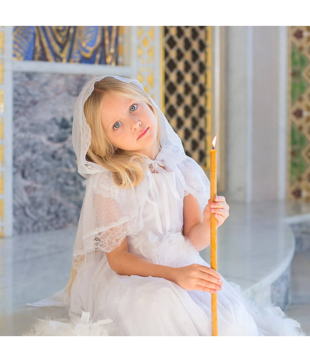 Whether you're looking for something unique, fashionable, or classically inspired, this dress offers it all. It’s a perfect choice for girls who want to celebrate their faith with grace and a little bit of glam.