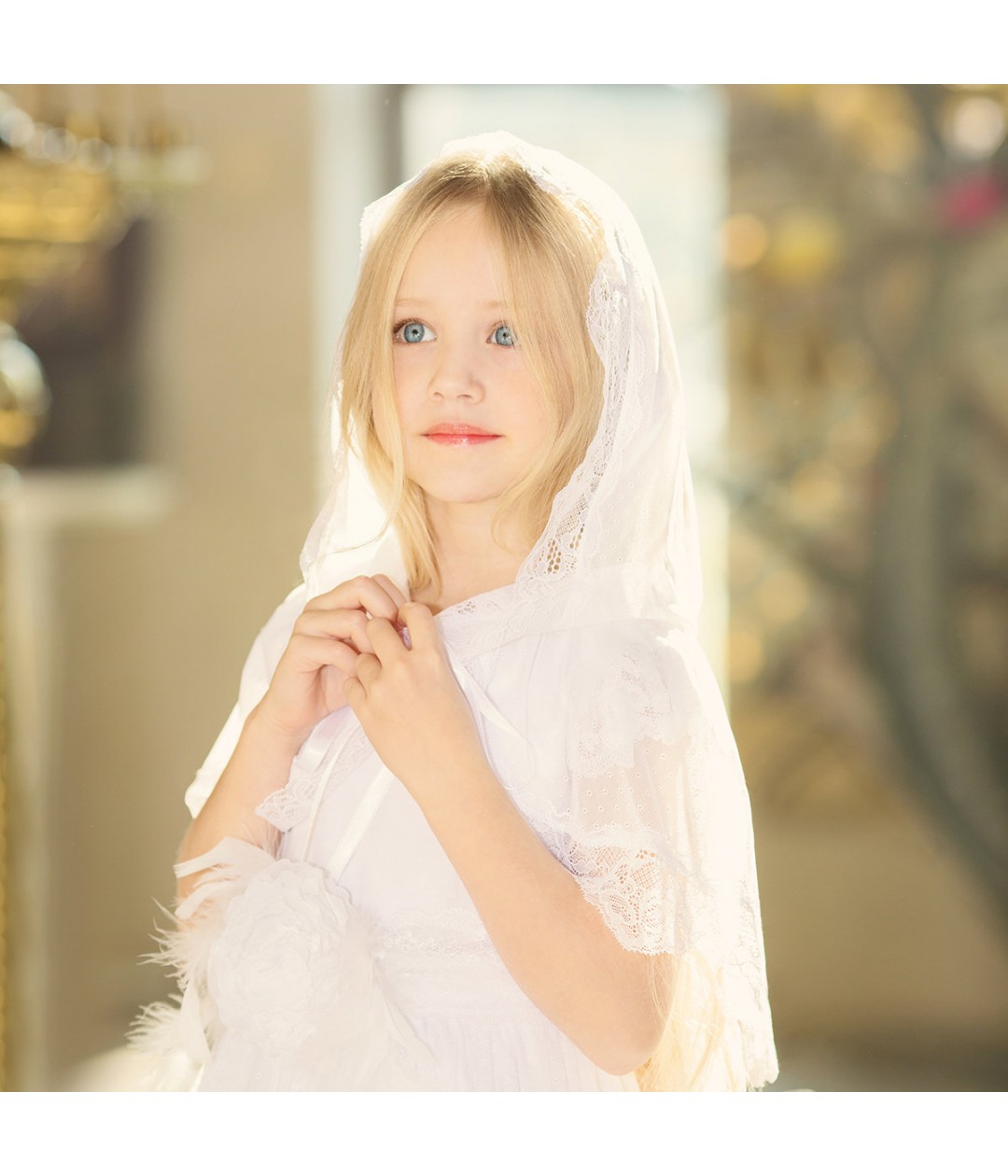 Perfect for First Communion, church ceremonies, or special moments to come, this veil is a beautiful heirloom piece your family will cherish.
