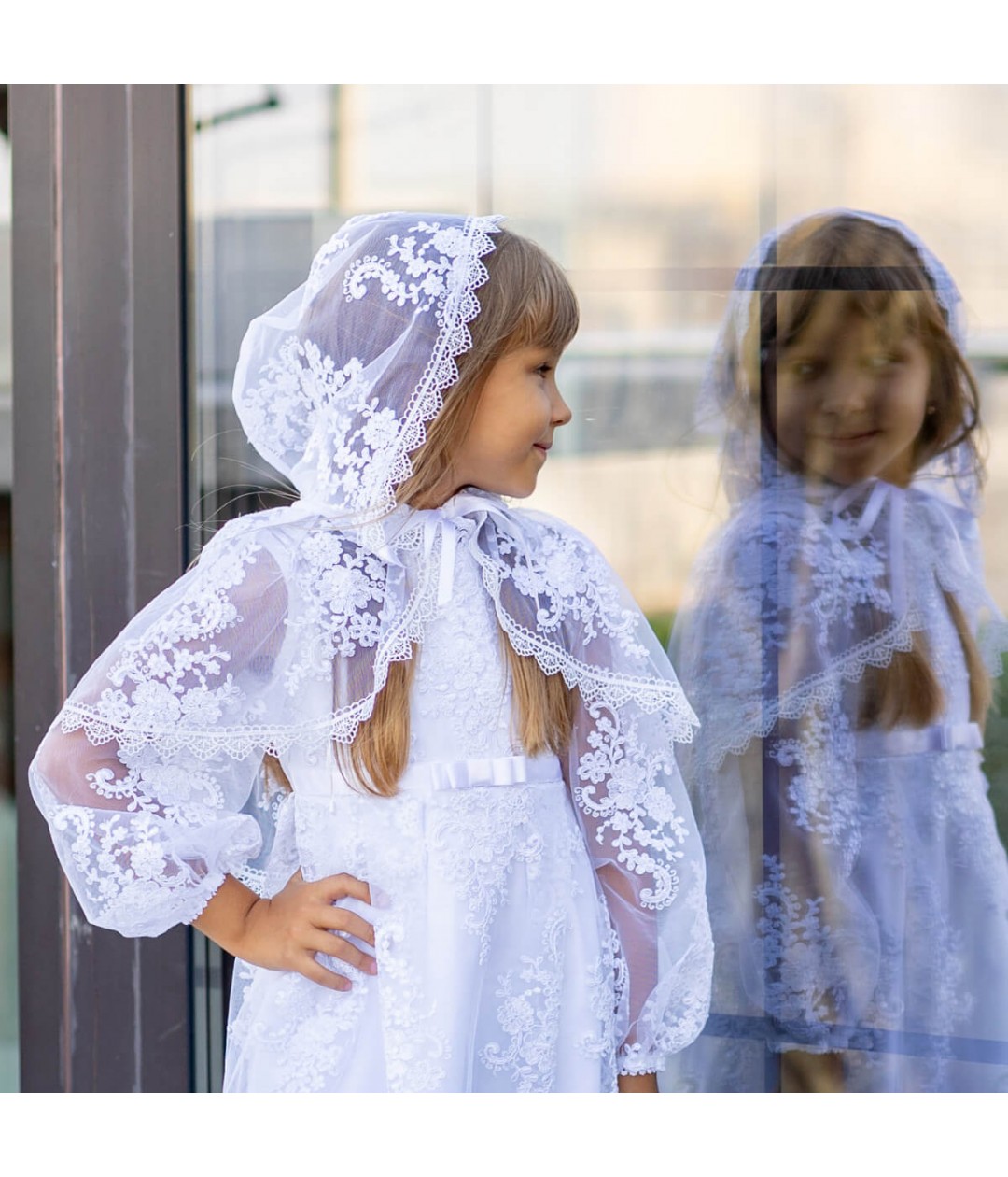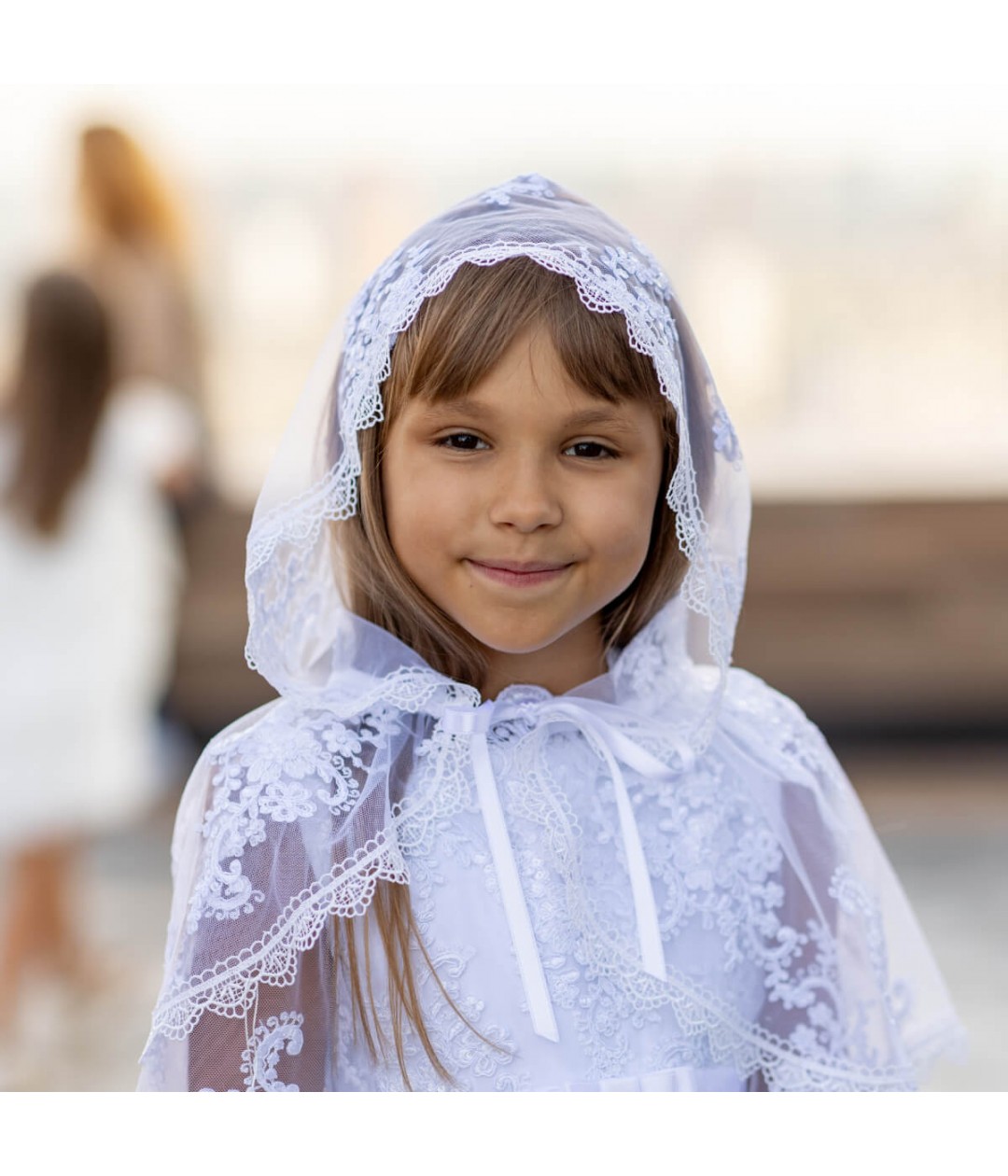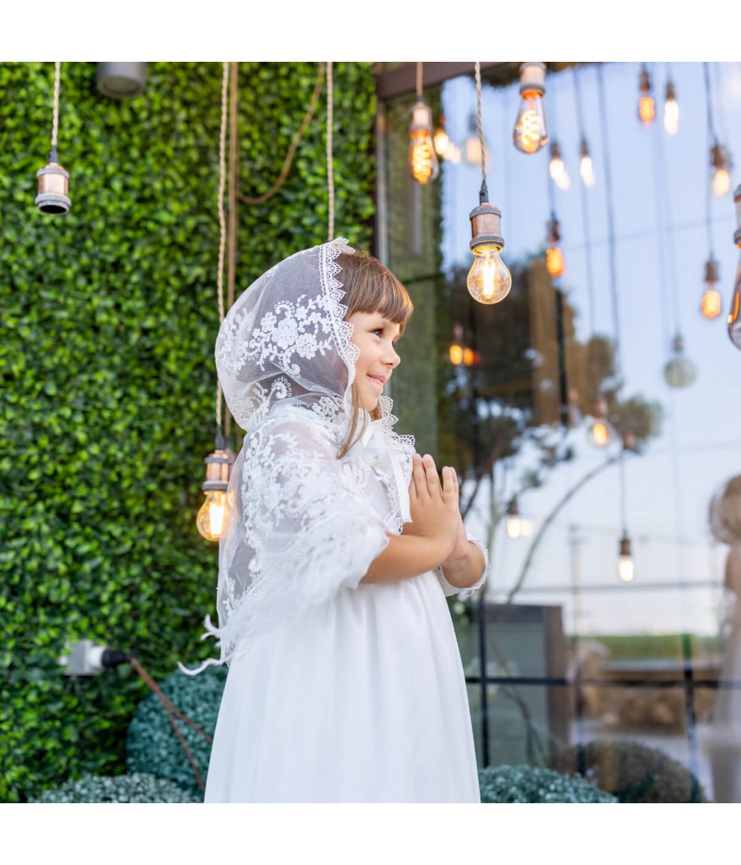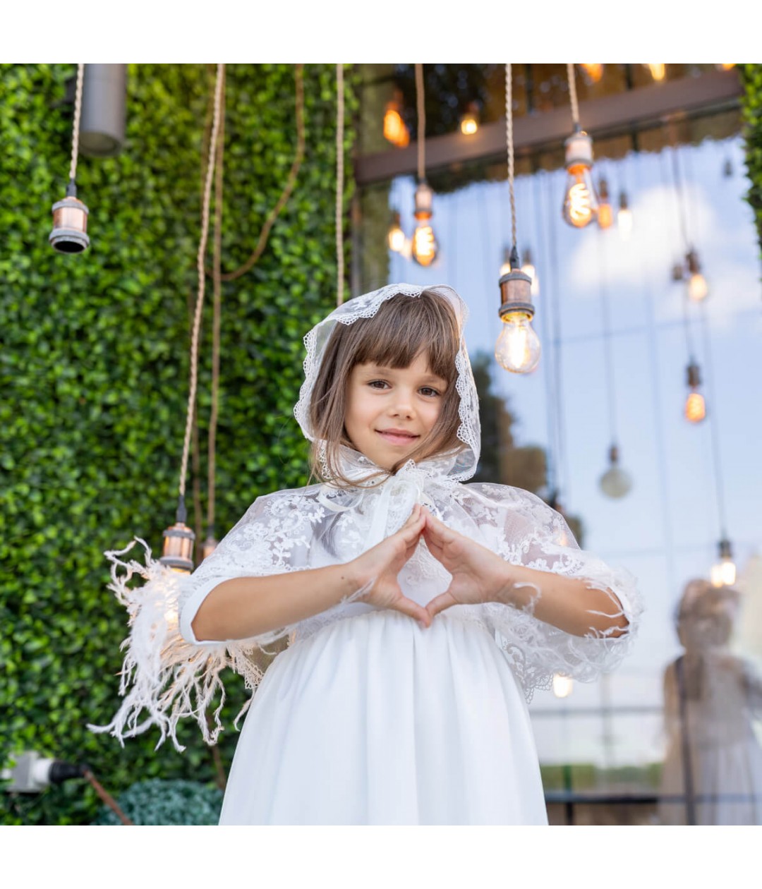 This versatile accessory pairs beautifully with our NILA Communion Dress, enhancing the elegance of its simple silhouette with just the right amount of lace detail. It also complements any silk Communion gown, making it the ideal choice for families seeking both tradition and refinement.