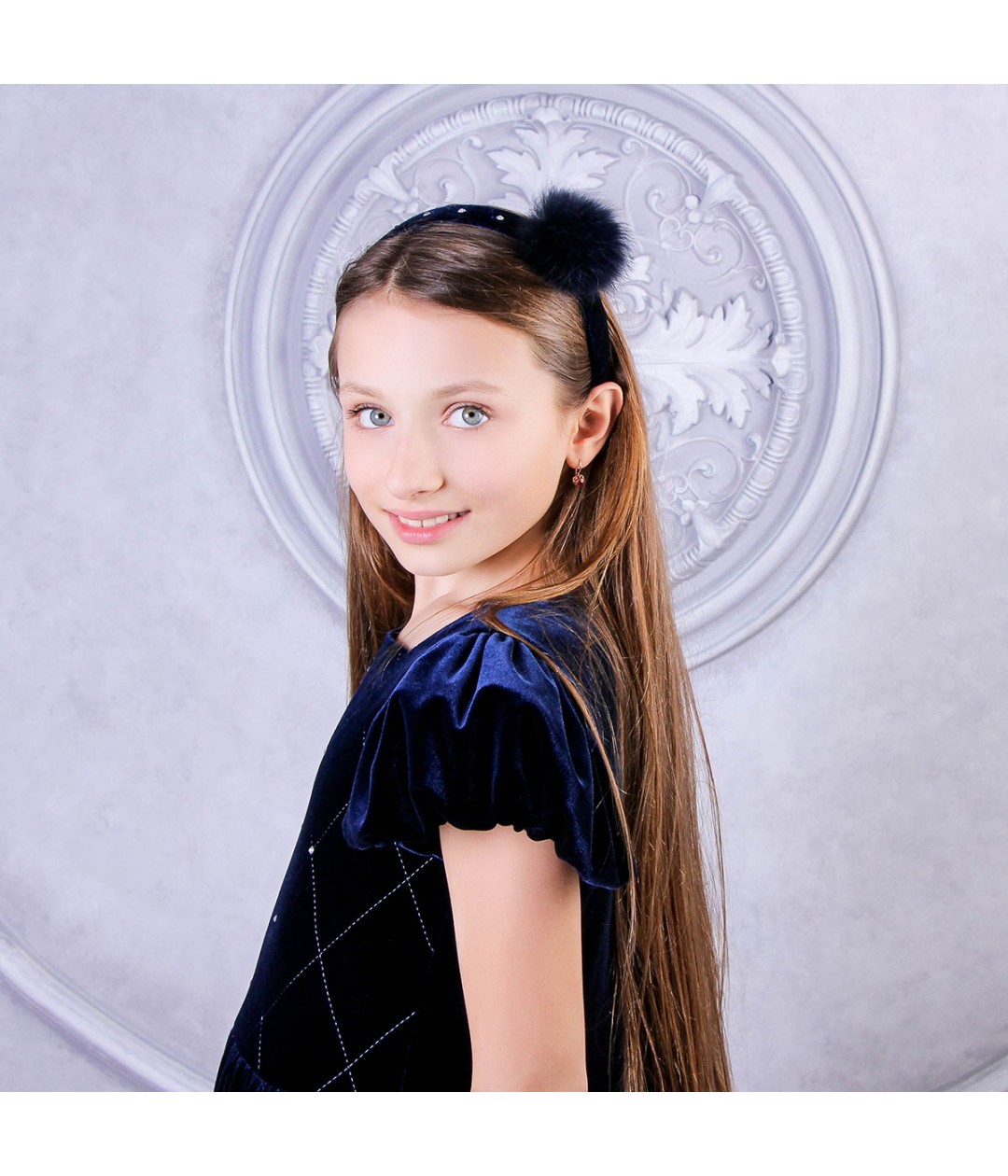 Pom pom headband dark blue