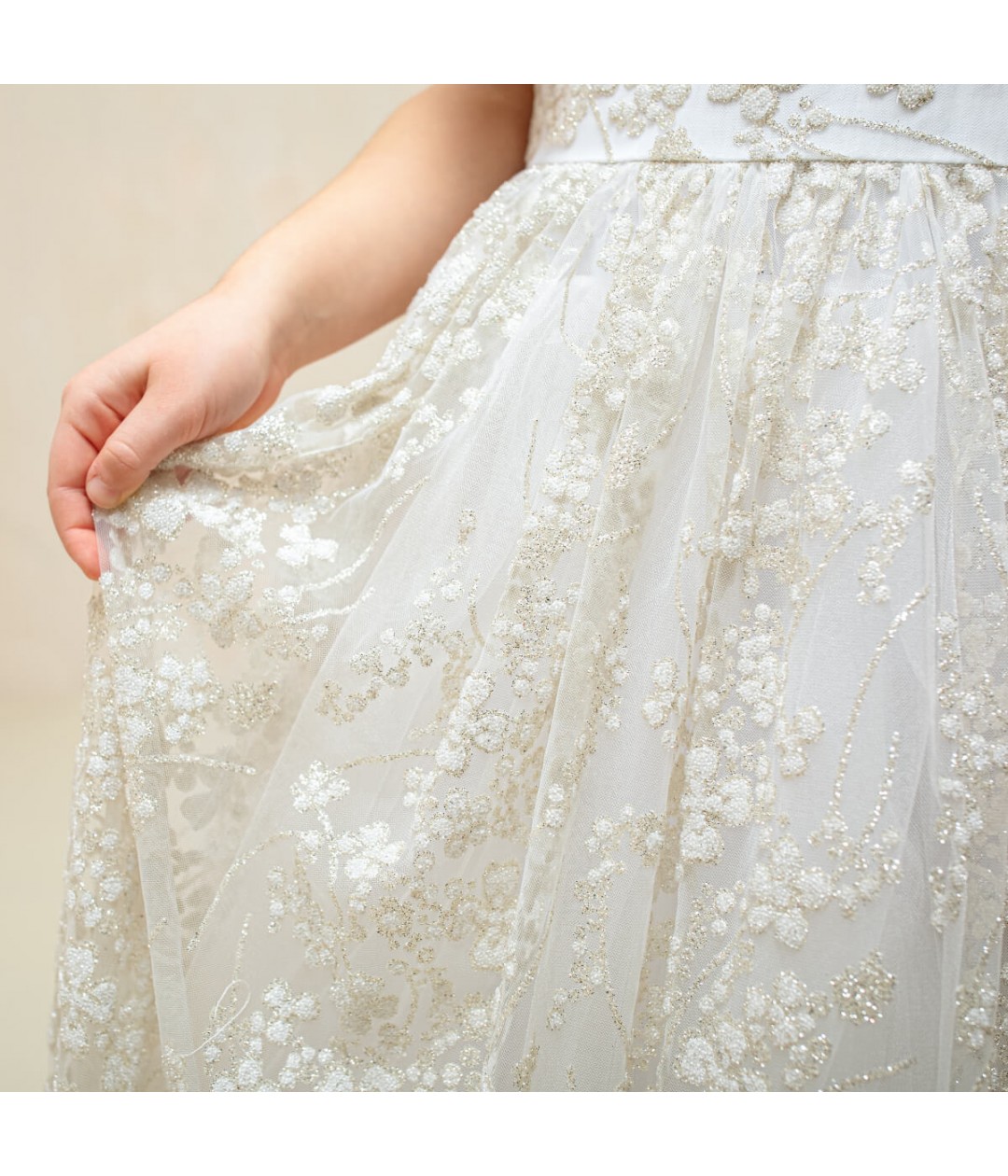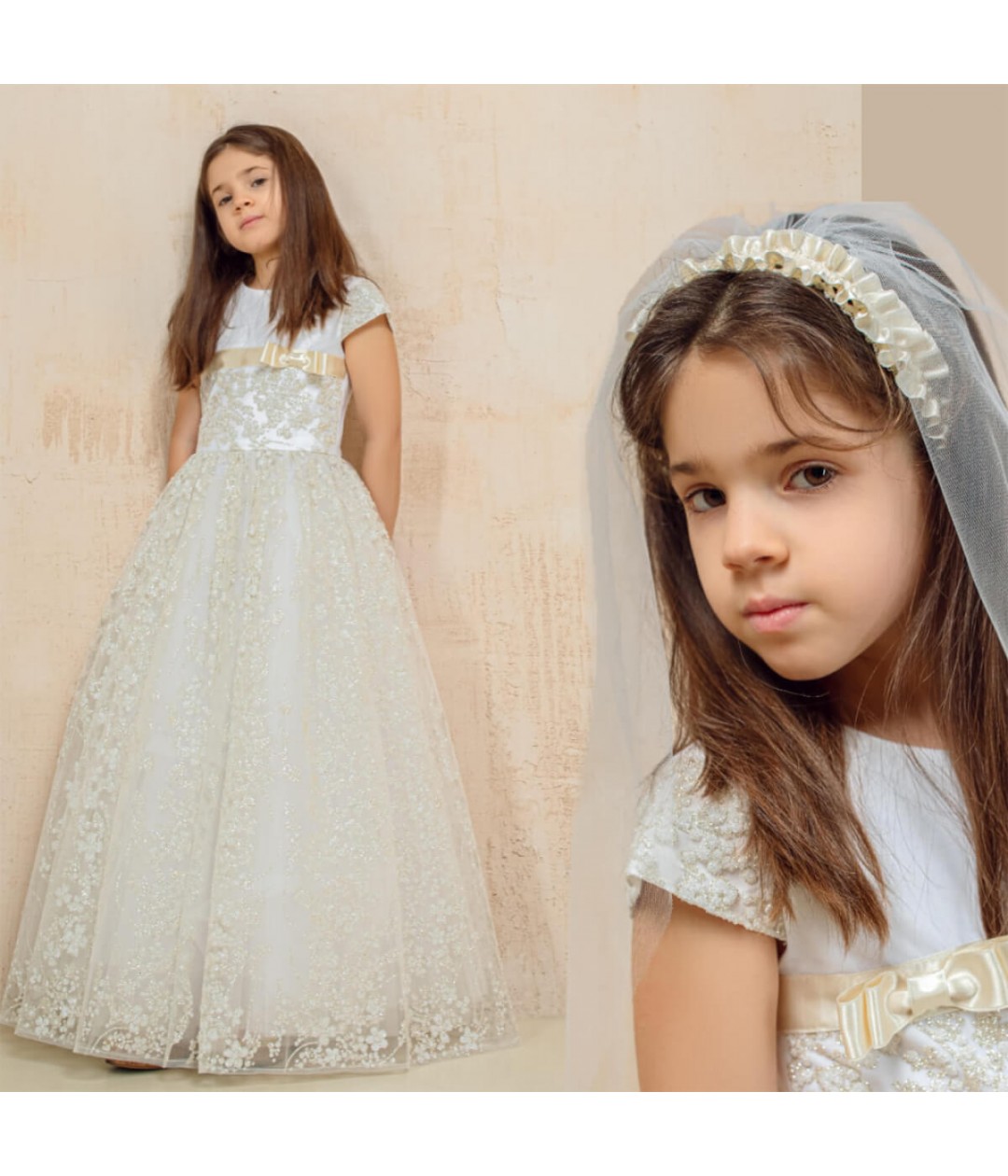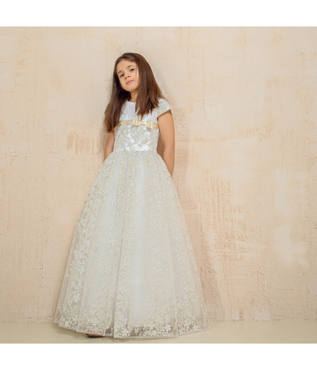 Whether paired with a veil or mantilla, this dress will make her feel truly special during her sacred celebration.Each gown can also be custom-made to your child's measurements, ensuring the perfect fit and a unique keepsake she’ll treasure forever.